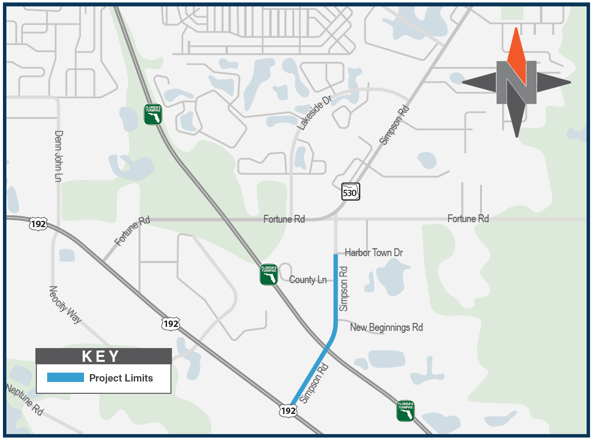 The purpose of this project was to reconstruct Simpson Road from a two-lane to a divided four-lane roadway, ultimately connecting U.S. 192 to the Osceola Parkway.